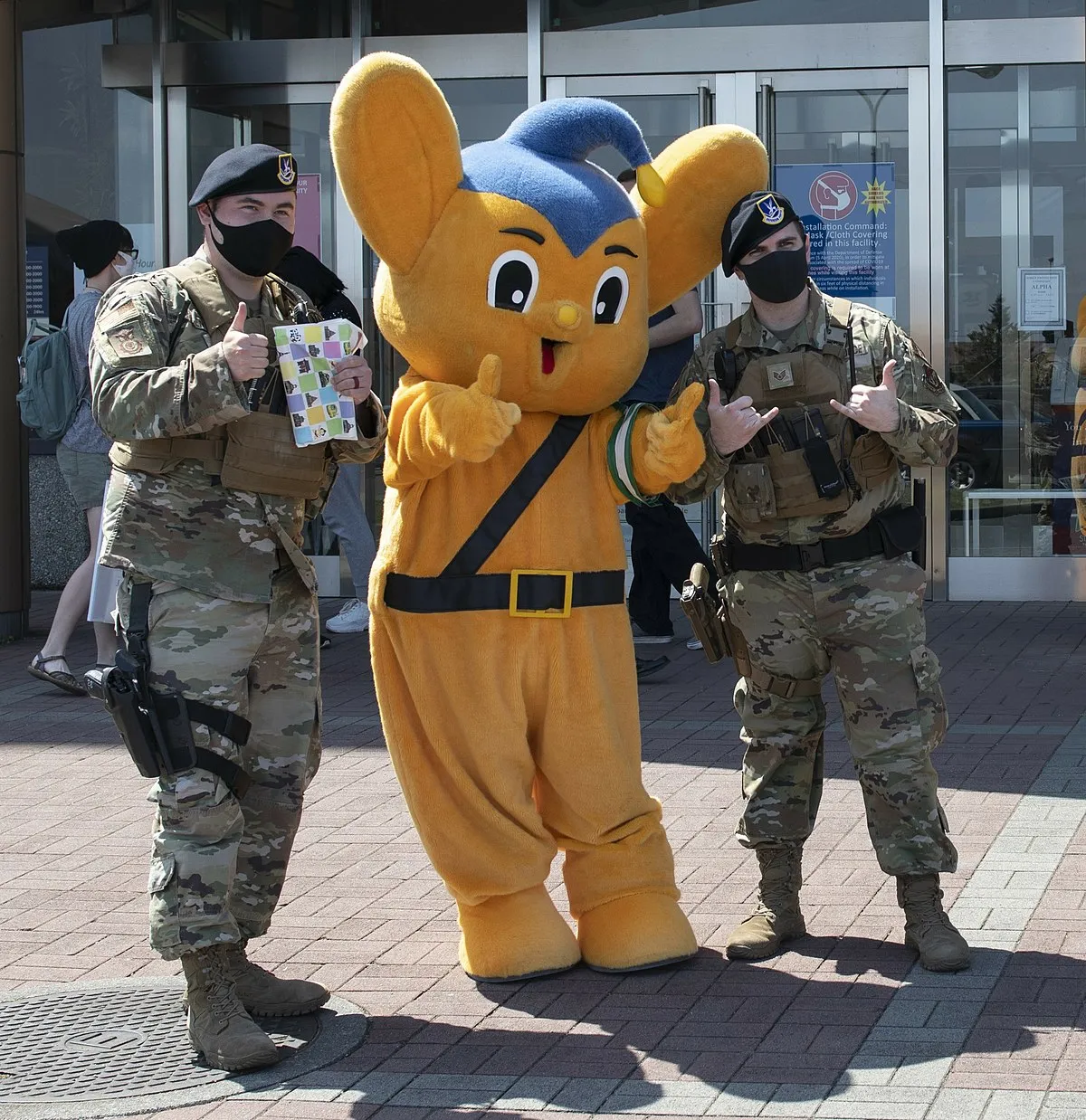 01 - Bibendum, Michelin's mascot, created in 1889, in an Italian poster from 1960. 02 - Mr. Met, New York Mets' mascot, created in 1964, was the first costume mascot in sports history. 03 - Ciao, Italian FIFA World Cup mascot in 1990, designed by Lucio Boscardin. 04 - Pipo-Kun, yuru-chara della polizia di Tokyo created in 1987, with two members of 374th Security Forces Squadron in Yakota, 2021. 05 - Duo Owl, Duolingo's mascot, created in 2014.